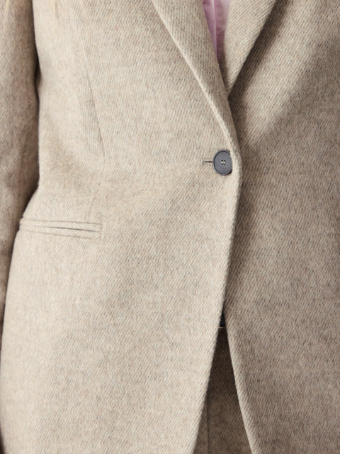 Crafted from a wool-rich melange fabric, this blazer comes in a neutral tone that'll blend seamlessly with your wardrobe all year round. Wear it as a full suit, or combine with casual separates to elevate your every day. Tinka is 5'11 and wears a size 8