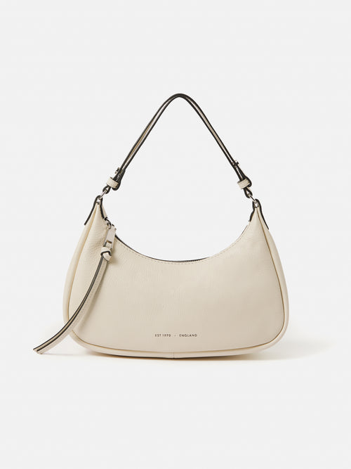 Our 90’s inspired Crescent Bag is the perfect pebble leather shoulder bag that will fit all of your essentials: phone, keys, cardholder and lipstick. Arriving in classic black, neutral off white and yellow for a bold statement and pop of colour to your transitional wardrobe. Featuring an adjustable strap and zip closure for security, this will be your go to bag for the spring season.