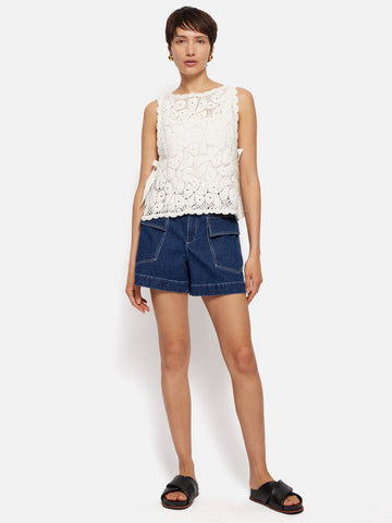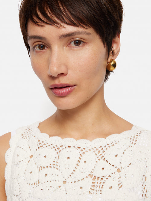 Artful, crochet-style embroidered fabric designed in the Jigsaw atelier characterises the Crochet Embroidered Tank. Whimsical open sides with cotton tape ties add to its summertime aesthetic; perfectly paired with a white tank, a cotton t-shirt or a strappy dress.