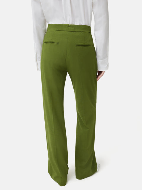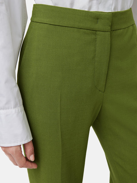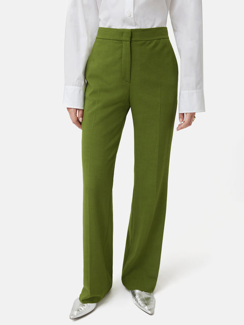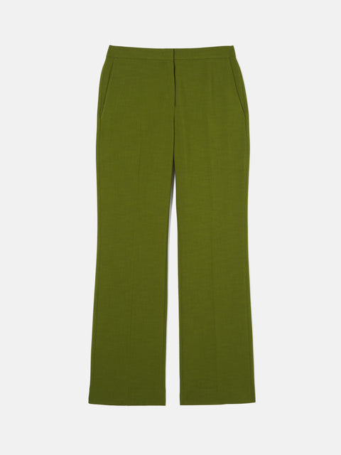 Our Mason trouser is back in new colourways for the new season. Cut from a sustainable viscose-blend with a crosshatch weave by Portuguese heritage mill RIOPELE. Designed with a tailored slim silhouette and kick hem. Features a zip fastening with hook and bar detail and functional side pockets. Style with knitwear or as a suit with matching Crosshatch Knox Blazer. Fit and Features