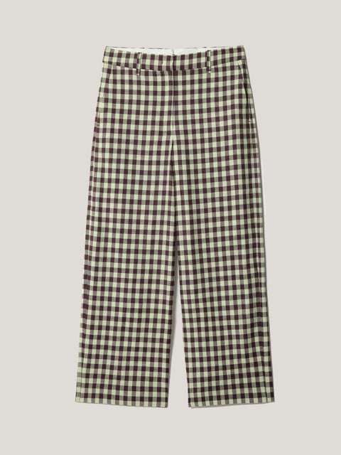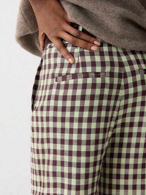 A classic gingham print makes these linen-blend trousers the ideal statement piece this season. With a cropped leg and belt loops to accessorise easily, keep it tonal with a mint green knit and have the print take centre stage. Chizoba is 5'9 and wears a size 8