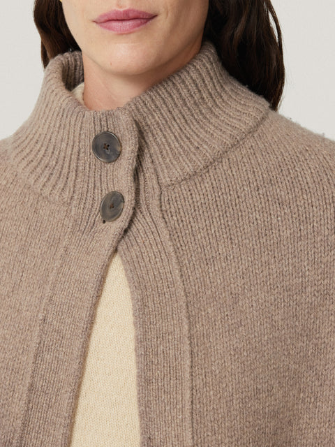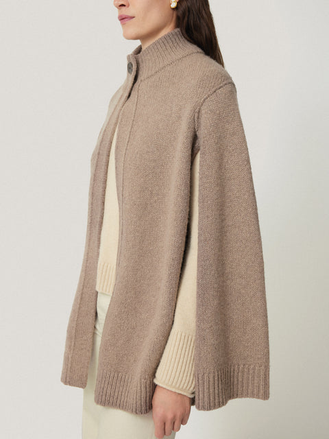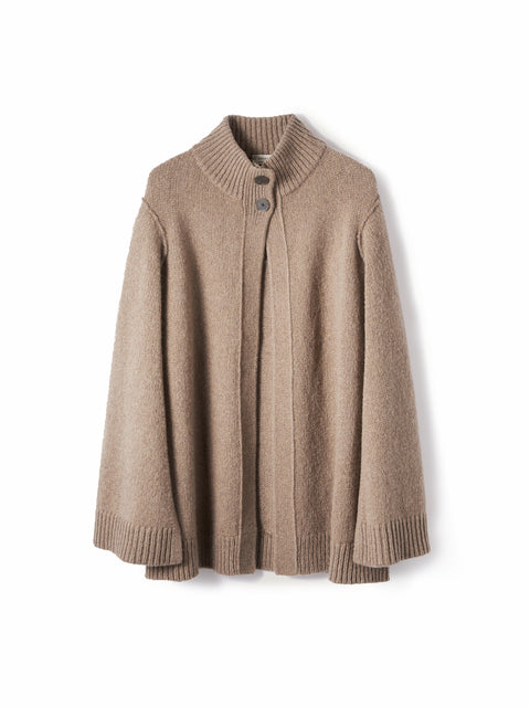This poncho is based on a slouchy turtle neck jumper from our archives. We deconstructed the design for the new season by unpicking the external seams while keeping some of the detail. This gave the piece freedom with open sleeves for wearing over all your best chunky knits. Wear when you need a warm layer but don't want to get into a coat.
