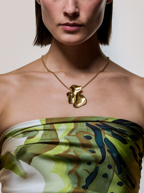 Echoing the floral pattern stories for Spring 2025, this long necklace is further testament to the natural beauty of flowers in a deconstructed petal design. Crafted from gold-plated brass, the organic design creates a bold statement for day or evening.