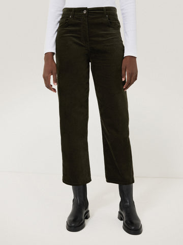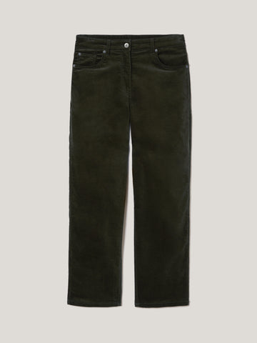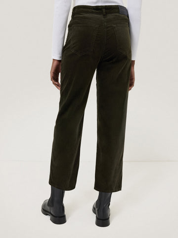The Delmont is our 90s-inspired high-rise jean with a relaxed leg shape and a crop leg. Updated in super-soft velvet twill, this classic 5-pocket design is both versatile and flattering for 9 to 5 wear.