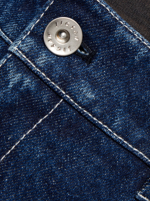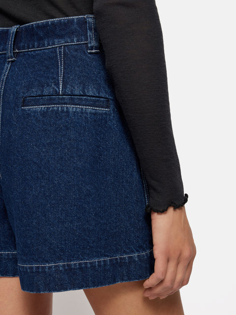 High-waisted short cut from a soft cotton denim with metal shank fastening and zip fly. Features front patch pockets, single back welt pocket and contrast topstitching. A wardrobe cornerstone that can styled with any top.