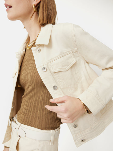 Authentic denim jacket in ethically sourced premium ecru cotton denim. Get the look and wear over our printed tea dress or double up with our jeans. Fit and Features