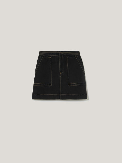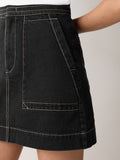 The perfect mini is here to carry you through the seasons. Cut for a flattering A-line silhouette in washed black denim, contrast stitching adds a contemporary finish, while oversized patch pockets to the front and back complementing the boxy shape.
