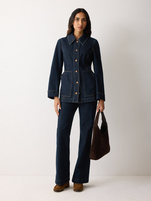 Denim Tailored Panelled Jacket | Indigo
