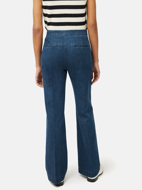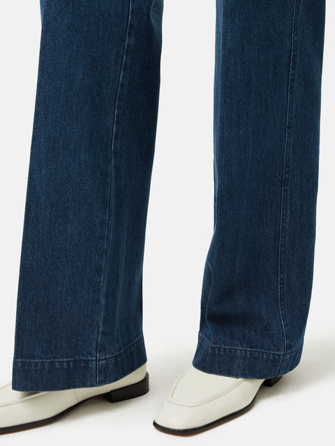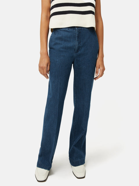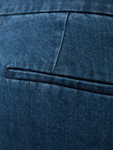 Crafted from sumptuously soft denim, these trousers redefine the boundaries of traditional tailoring, offering a casual yet refined allure. Our best-selling straight leg silhouette is combined with the versatility of denim, providing a perfect fusion for modern-day dressing. Embrace its dual nature in your styling: pair it with the matching jacket for a relaxed twist on tailoring, or opt for a more formal jeans-inspired look by wearing them back with a tee. Fit and Features