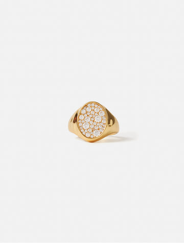 For a modern heirloom look no further than the Diamante Signet Ring. Plated in 24ct gold and encrusted with mixed sizes of cubic zirconia this ring is an elevated classic that will add a touch of sparkly to your dark winter days.