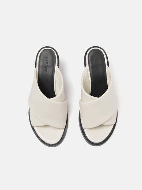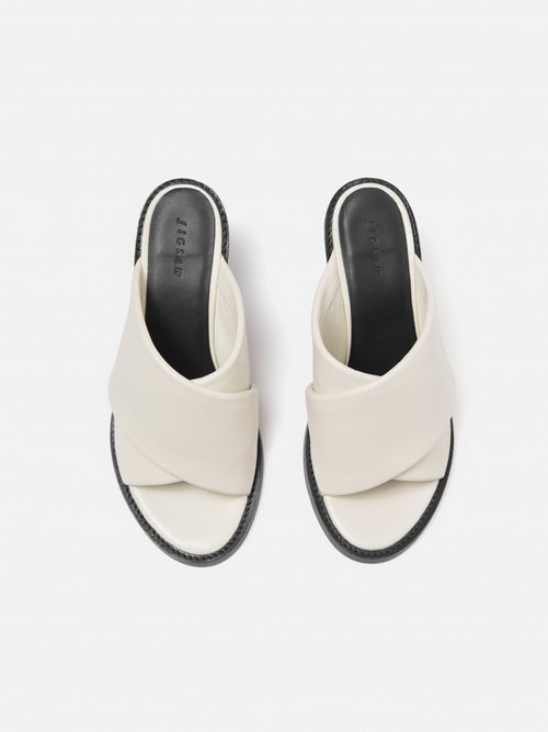 Our Duvile Sandal combines style and comfort with padded cross straps, underfoot padding and butter soft leather. Featuring a block heel that make these sandals the perfect day to night shoe. For an understated and classic look opt for the all over black or for a modern contrast wear the black heel with white upper and pair with tailored trousers and jeans alike.