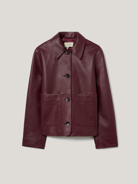 The Eve leather jacket is designed to get better with age and wear, evolving through time to take on characteristics that are uniquely yours. Butter soft sheep leather is accented by large black buttons, while the cropped boxy fit is a dream to pair with leather trousers or high-waisted denim. Aden is 5'11 and wears a size 8