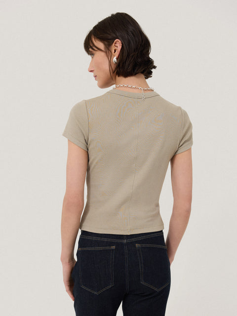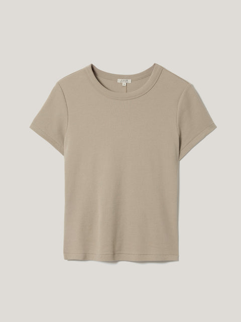 A basic with a 90s-inspired silhouette, this tee has a cropped baby fit, perfect for wearing alone or layered in a soft cotton jersey.