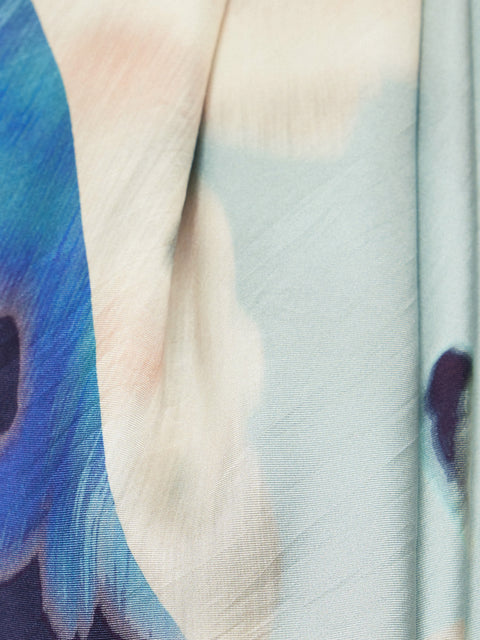 Our in-house print designer took inspiration from the faded grandeur of manor houses and peeling wallpapers revealing hidden patterns underneath when it came to creating our Floral Drift print. This scarf showcases the unique pattern through a print placement technique on fluid silk twill. Designed to be worn a multitude of ways from around the neck to on your handbag as a final adornment.