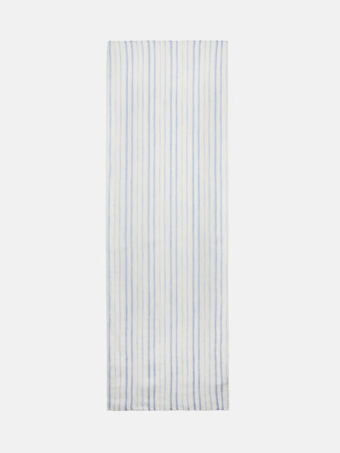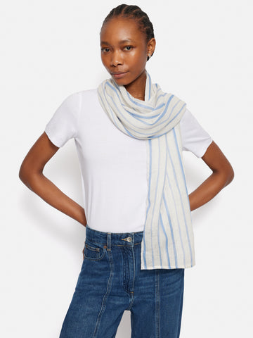 Hand painted fresh blue stripes on a white base in 100% Linen will have you longing for warm summer days and make this woven scarf the perfect addition to your spring wardrobe. Wear wrapped over your shoulders or hung loosely around your neck to create a laid back look for the new season. Fit and Features