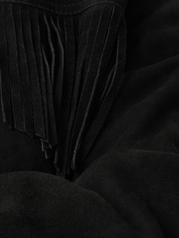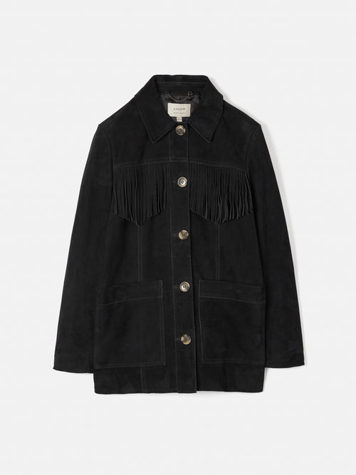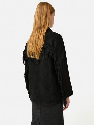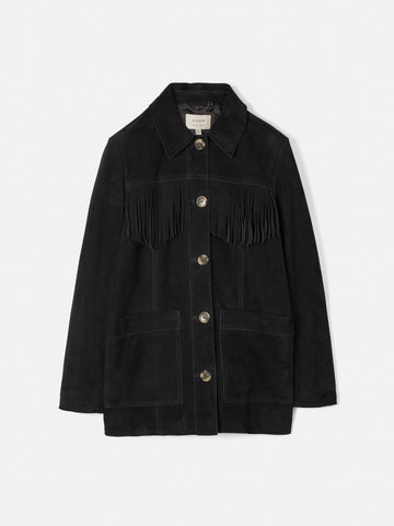 The sell-out suede sensation returns. Slip into the coveted casual fit that effortlessly drapes over your favourite seasonal knits. Crafted from premium suede with self-fringing detailing on the front, back, and sleeves, this jacket brings just the right dose of Western charm.