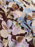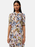 Patterned in-house, this beautiful occasion dress combines different colourways of our Graphic Pansy print. Cut in crinkled georgette viscose, the ultra-feminine silhouette features a soft cowl neckline, sculptural sleeves and raw edge frill details throughout. Features and invisible back zip and arrives with a slip dress. The mixed panels and intricate details on this dress is time-intensive to make, but the result is something truly show-stopping.? Fit and Features