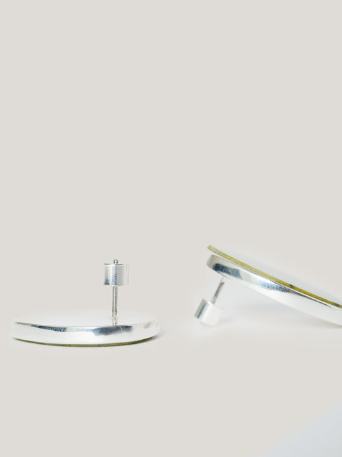A slice of green jasper brings opulence to these statement disc earrings. A healing talisman known for its grounding and stabilising properties makes this piece perfect for those who seek inner calm, as well as being loved for its vibrant green tones. Due to the natural properties of the stone, each piece will differ in appearance and colour.
