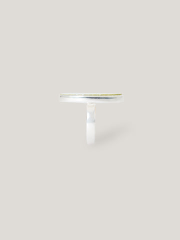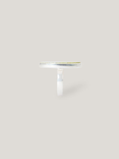 A slice of green jasper brings opulence to this statement disc ring. A healing talisman known for its grounding and stabilising properties makes this piece perfect for those who seek inner calm, as well as being loved for its vibrant green tones. Due to the natural properties of the stone, each piece will differ in appearance and colour.