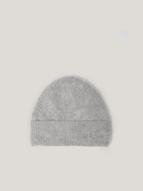 The finishing of our Halo cashmere is so specialised, only two factories in the far east will work with it. This is why we've kept the full traceable fabric to a limited run across this season's knitwear and accessories for a truly unique piece in your wardrobe. This cashmere beanie is ready to top off all your cold weather looks with a soft, fuzzy finish.