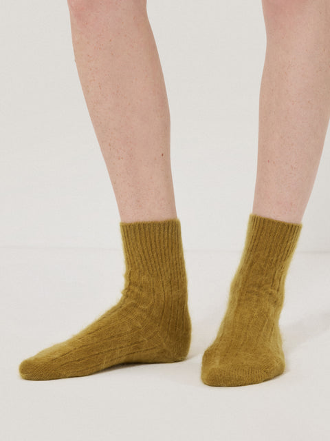 Our signature Halo cashmere now for your feet - you heard us right. Loved for its supersoft fluffy texture, this cashmere is created through a special wash and finish which we named Halo due to its heavenly aura. Feet will love sinking into these cashmere socks for the colder seasons.