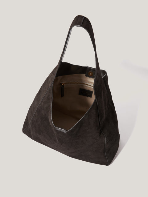 The Heckfield is a Jigsaw icon. This soft slouch bag has been crafted from suede leather with ample interior space for all your essentials. We love the wide shoulder strap for ease carrying day-today with a magnet closure to keep things safely stowed.