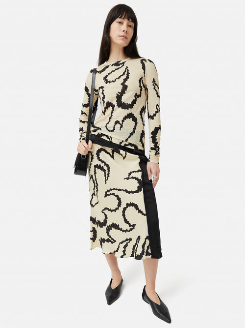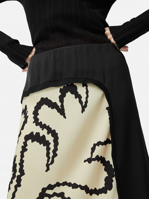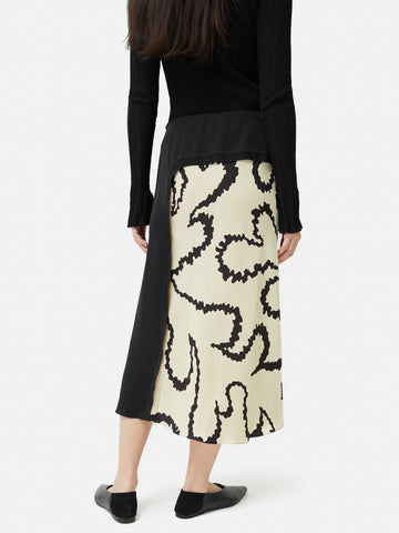 This sleek skirt boasts a monochromatic design with a striking contrast printed panel. Its half-and-half style invites you to play around, pairing it with either a plain top or with the matching Hydra Coral Sheer Cotton Top. Fit and Features