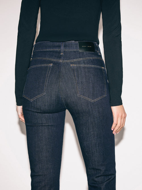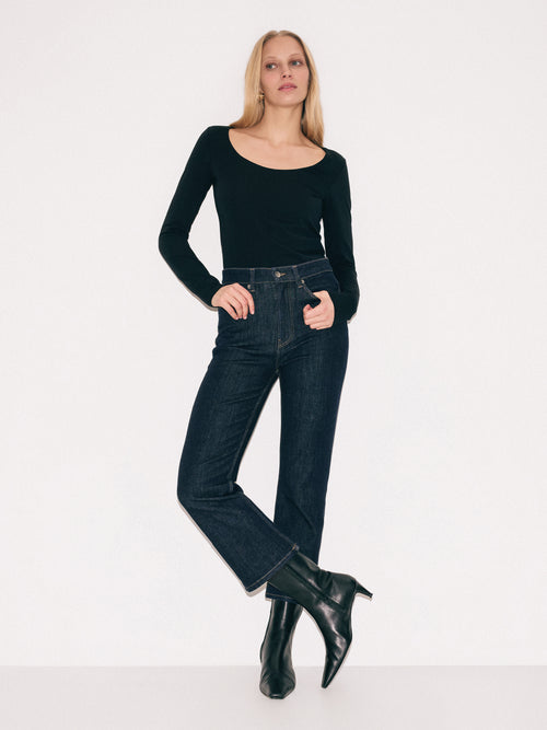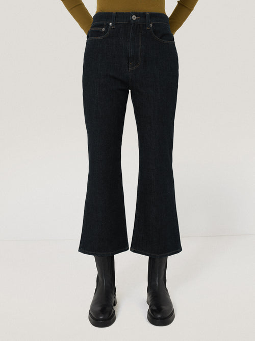 The Ines jean comprises of comfort, style and versatility for the wardrobe. Cut for a mid-rise silhouette, a subtle cropped flare kicks out at the hem for a subtle 70s-inspired aesthetic. Stretch denim flatters in all the right places.