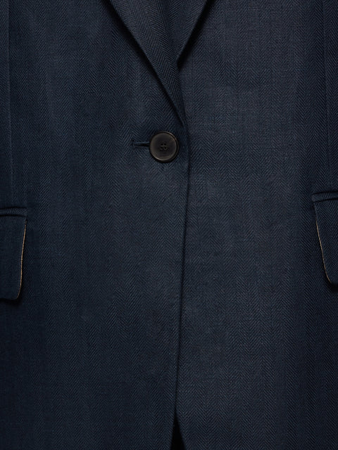 Our cherished Gibson blazer is back in new colourways of pure herringbone Irish linen. We have collaborated with heritage Irish weavers BAIRD MCNUTT again this season. Featuring a relaxed fit with a single-breasted front, jet flap pockets, notch lapel, and melton under collar. Fully lined for effortless layering, ideal for chic, lightweight looks. Pair it with the matching trouser for a seamless spring and summer workwear solution. Fit and Features