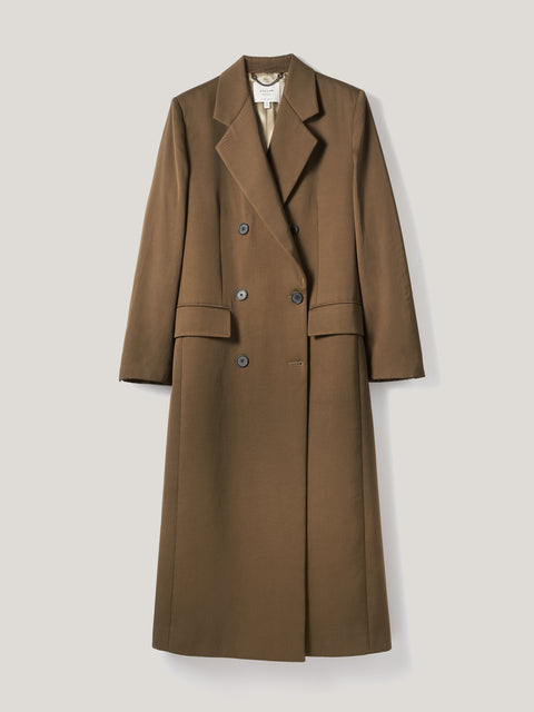 This classic coat is set to become your forever piece. Enduring in cut, fabric and silhouette, the sleek double-breasted design has been crafted from an Italian viscose cotton twill with internal lightweight wadding for a discreet extra layer of warmth. Contrasting cream accents play to our love of unexpected details, with a Melton collar adding crisp body and sharpness to the coat’s upper half.