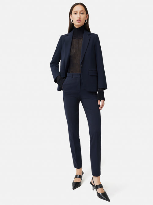 A Jigsaw classic, this Paris trouser in a soft wool-blend Italian fabric with a hint of stretch for a comfotable, easy fit has a straight, slim fit silhouette. Featuring classic details including a tailored waistband, slanted pockets, concealed zip and hook-and-bar closure. Style with a classic shirt or seasonal knitwear. Fit and Features