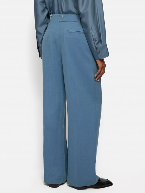 Tailored in-house using a bespoke pattern, the Kemp trouser is the epitome of impeccable tailoring and fit. Medium rise, wide leg, adorned with intricate double pleat detailing at the waist to beautifully accentuate your silhouette. Reinvented in sustainable Italian linen from our Heritage Mill, complete the ensemble with its matching jacket. Fit and Features