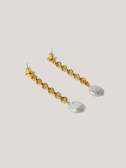 Keshi pearls are known for their iridescent shimmer and raw beauty as seen with these drop earrings, where single Keshi pearls suspend from a vintage-inspired cable chain. Each piece is one of a kind due to the nature of the pearls, making for a unique jewellery piece in your collection.