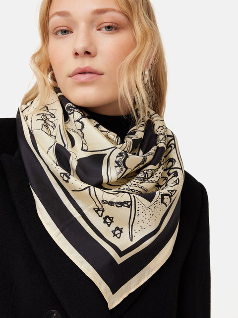 Kings & Queens Silk Scarf | Monochrome