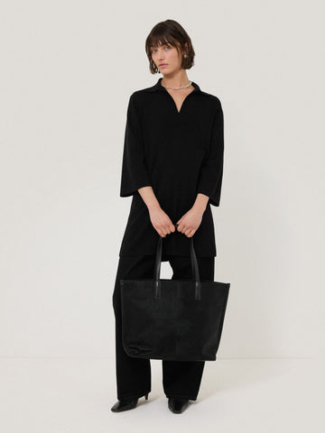 We love the comfort and ease of this knitted kaftan top as the perfect transitional throw-on. Detailed with a spread collar and an open neckline, wear with relaxed denim for a laidback weekend look.