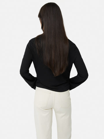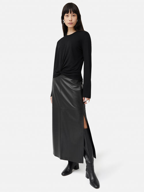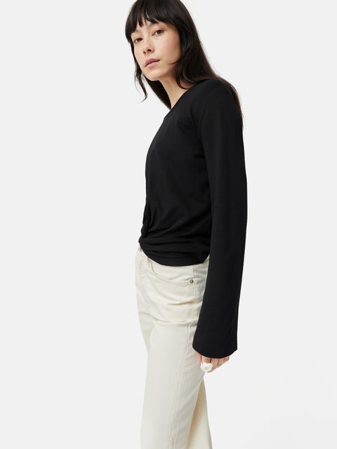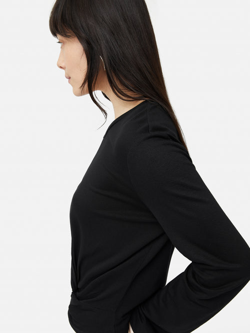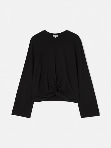 An icon with a stylish twist: our knotted front long sleeve tee crafted from stretch viscose to give it a sleek, form-fitting silhouette. Fit and Features