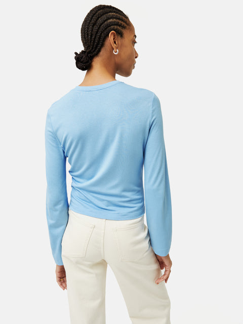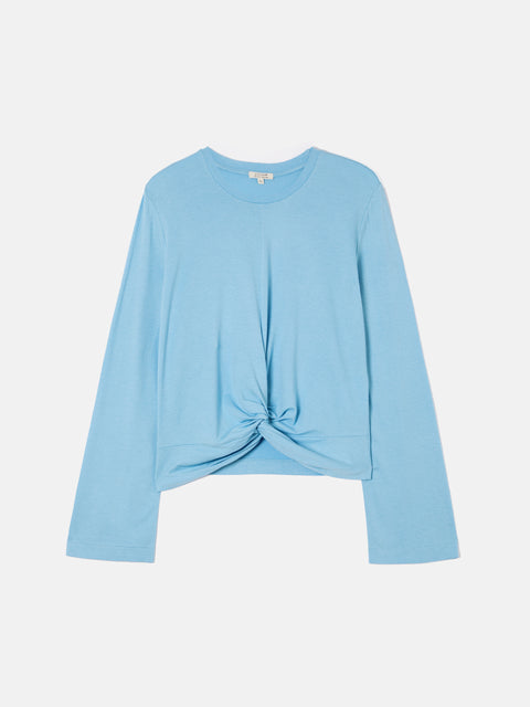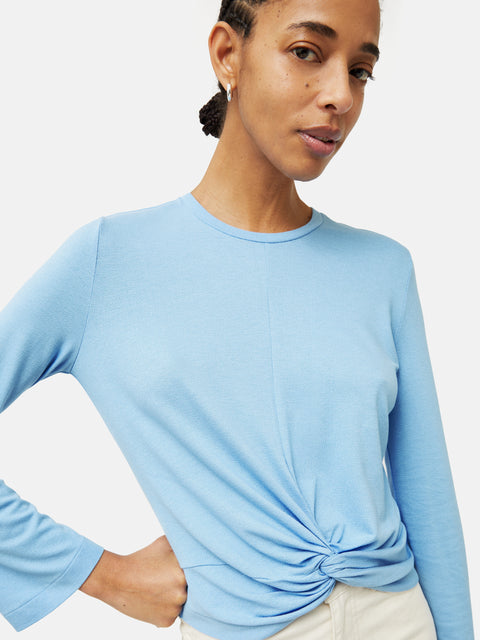 An icon with a stylish twist: our knotted front long sleeve tee crafted from stretch viscose to give it a sleek, form-fitting silhouette. Fit and Features