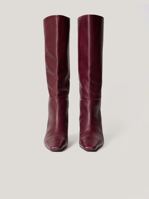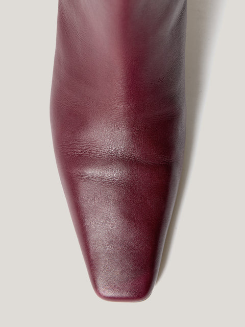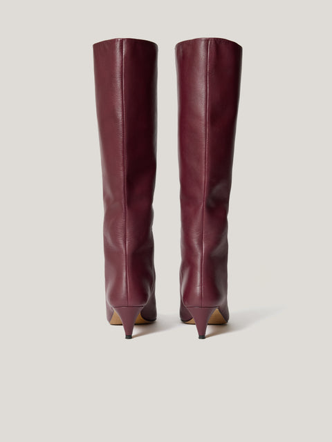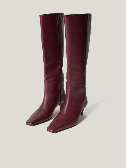 The Bobbi is a striking boot that features a chiselled toe and kitten heel, reworked in super-soft nappa leather in a cherry red. A styling hero for the season, style it playfully with a mini skirt with a slight ruche for work to weekend plans. Gigi is 5'10 and wears a size 8