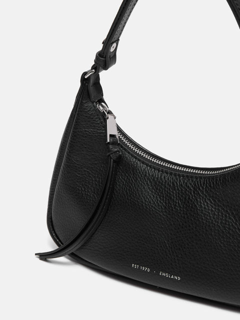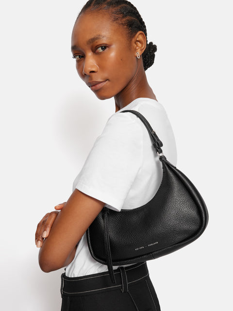 Our 90’s inspired Crescent Bag is the perfect pebble leather shoulder bag that will fit all of your essentials: phone, keys, cardholder and lipstick. Arriving in classic black, neutral off white and yellow for a bold statement and pop of colour to your transitional wardrobe. Featuring an adjustable strap and zip closure for security, this will be your go to bag for the spring season.