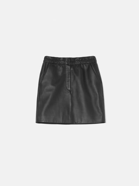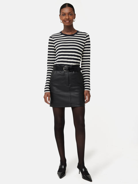 Supple leather mini skirt crafted from ethically sourced leather. Fully lined, with side pockets and front zip and hidden magnetic closure fastening. A luxe wardrobe staple, wear with chunky knits and boots for now and trainers later. Fit and Features