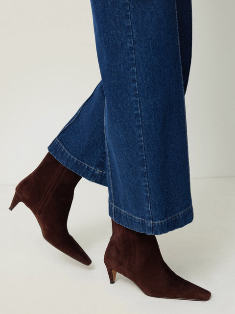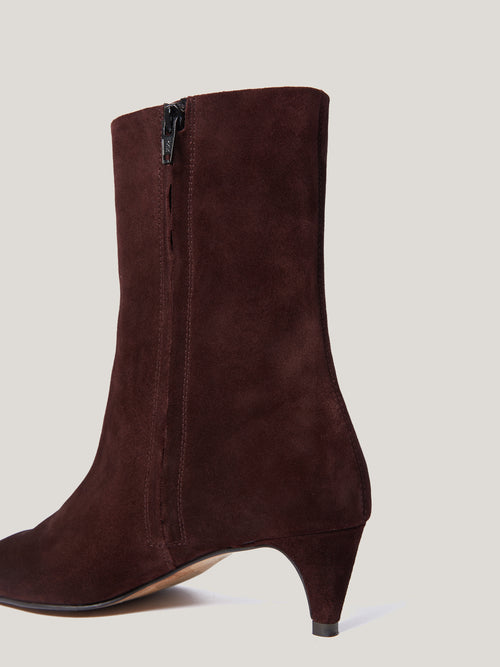 A chiselled toe and kitten heel sharpens the Valerie boot, reworked for the new season in supple suede leather. A side zip fastening provides easy access getting on and off. A no-brainer with all your day-to-night looks.