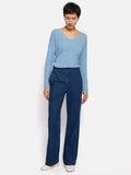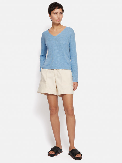 Linen Cotton V Neck Jumper | Blue