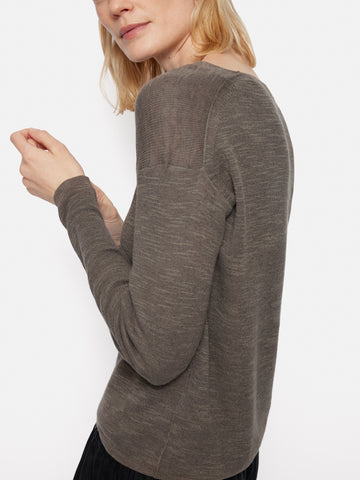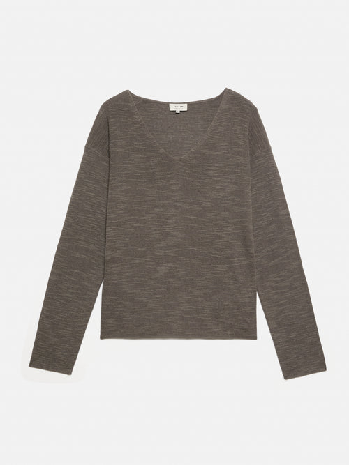 Lightweight jumper in a linen-cotton blend with an easy fit and fine slub texture for a natural feel. Wear solo to showcase the feminine V neckline or layer it over a vest for added versatility. Fit and Features