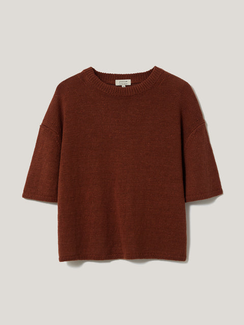 Embrace the art of laid-back, summertime elegance with this breathable linen knitted top. A relaxed, boxy silhouette meets a crew neckline, culminating in a chic yet understated aesthetic, especially when paired with the matching skirt.