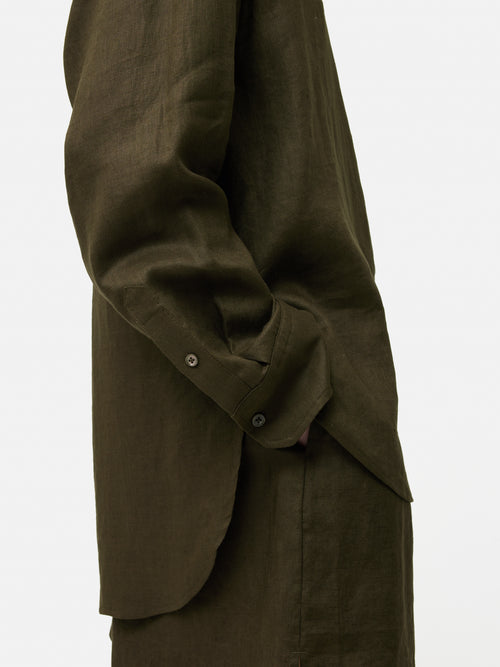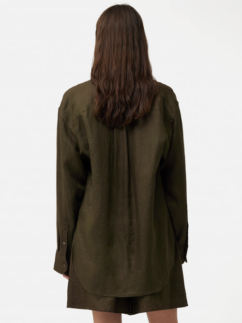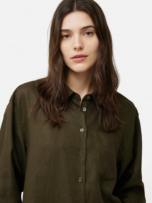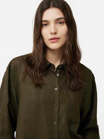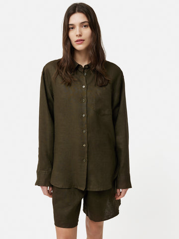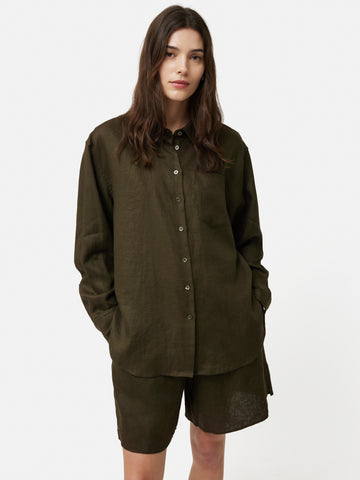 If there’s one thing to kick off the season with, it’s the perfect linen shirt. This is ours. Classic relaxed fit cut from lightweight linen. Gorgeous box pleat detail. Scooped hem for easy tucking. Mother of pearl buttons. A tried-and-tested Jigsaw icon that now comes in new colours with matching trousers, as well as shorts. Fit and Features