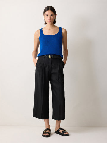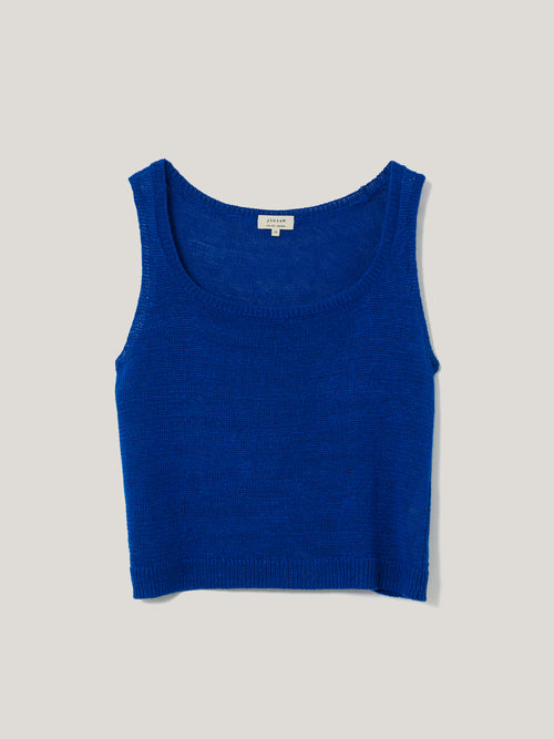 A sleeveless version of our knitted linen T-shirt, this vest features a chic square neckline offset with a cropped, boxy fit.