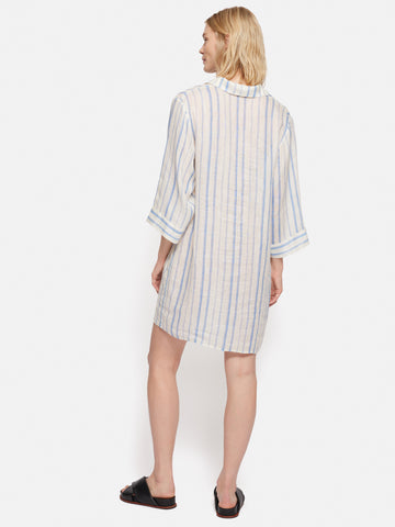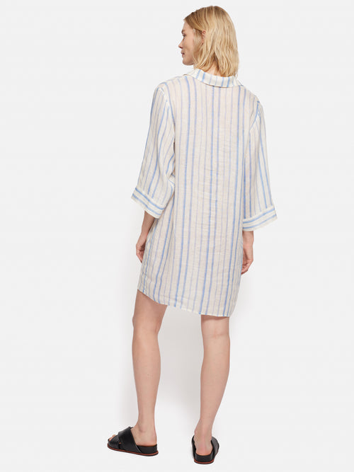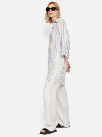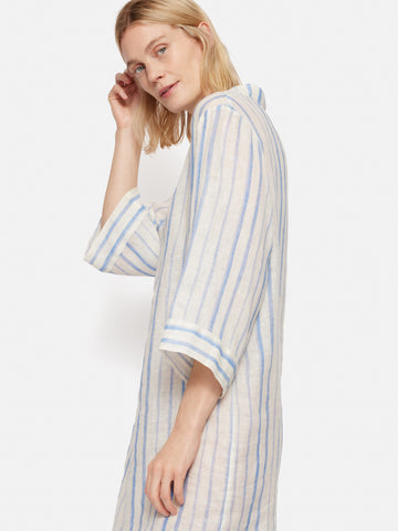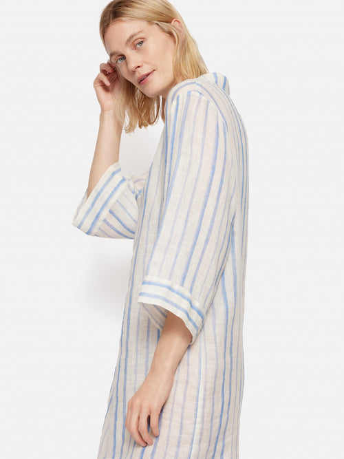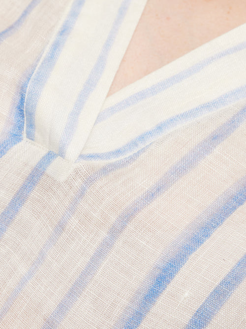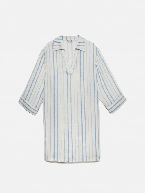 Your go-to for the beach. Our short linen tunic dress is cut for a comfortable kaftan shape and boasts a hand-painted blue stripe. Layer over swimwear as a cover-up or team it with trousers.