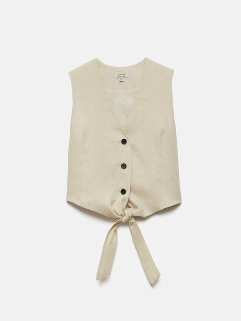Featuring a tie fastening and buttons on the centre-front, the Relaxed Linen Waistcoat personifies effortless summertime elegance. Perfect worn on its own and layered over a tee alike - best worn with a high waist trouser.