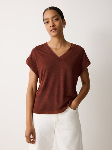 Linen V Neck Tee | Brown