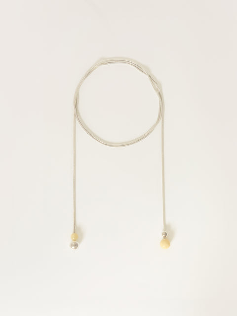 Giving the illusion of a cord necklace, reworked in silver plating, this long necklace is one for the minimal lovers. Signed off with beaded tips, drape effortlessly to instantly update any neckline.